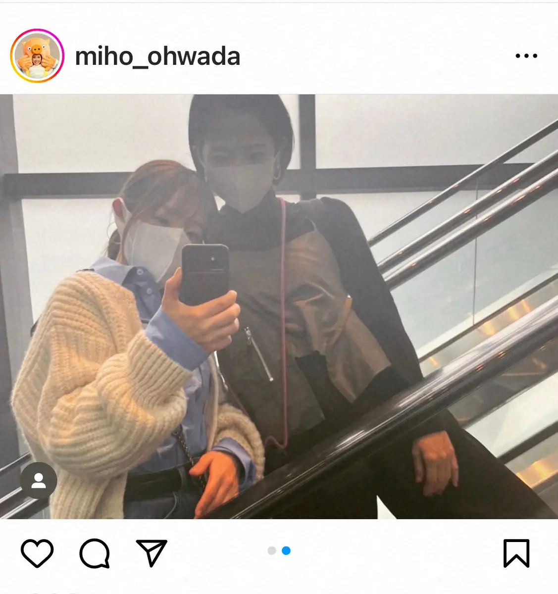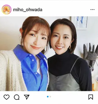 女優の大和田美帆(39)が13日、自身のインスタグラムを更新。友人のタレント、大沢あかね(37)との息抜きショットを披露した。