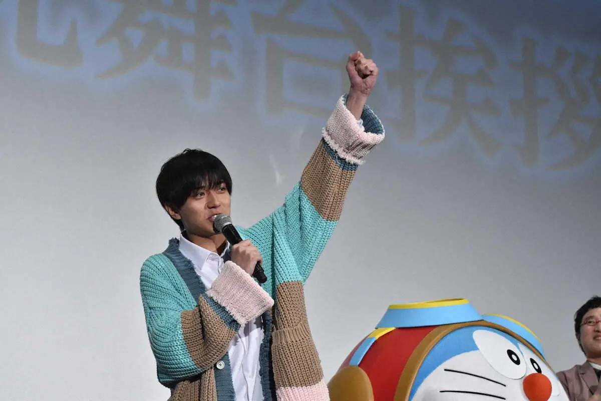 King&Princeの永瀬廉(24)が14日、都内で「映画ドラえもん のび太と空の理想郷」の大ヒット御礼舞台あいさつに出席した。