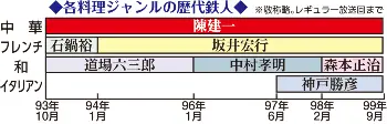 1993年から6年間放送された「料理の鉄人」で、和食やフレンチの鉄人は入れ替わったが「中華の鉄人」の称号は陳さんが1人で守り抜いた。