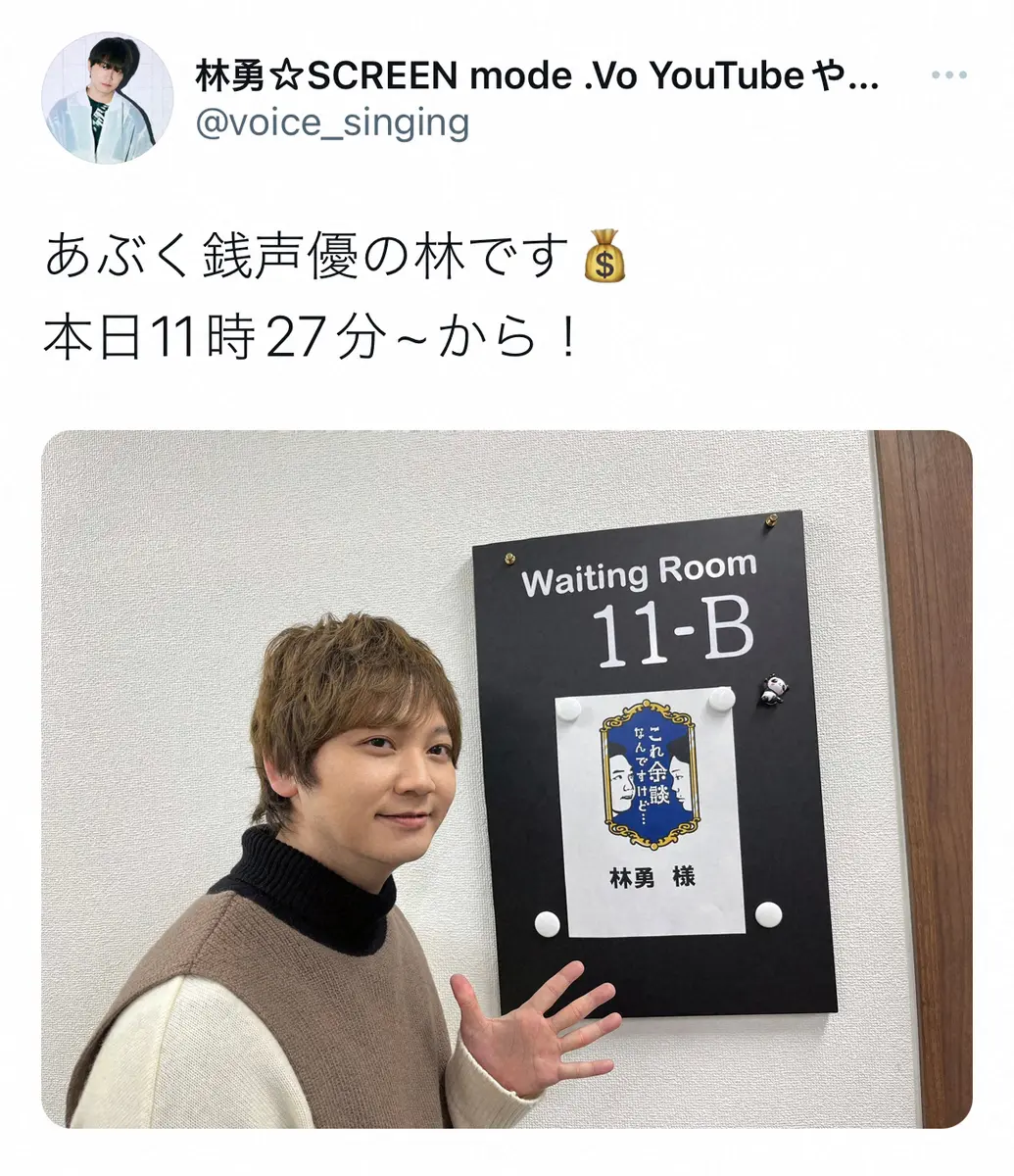 人気声優の林勇(39)が15日深夜放送のABCテレビ「これ余談なんですけど…」に出演。トーク番組には初出演で、業界入りのきっかけについて語った。