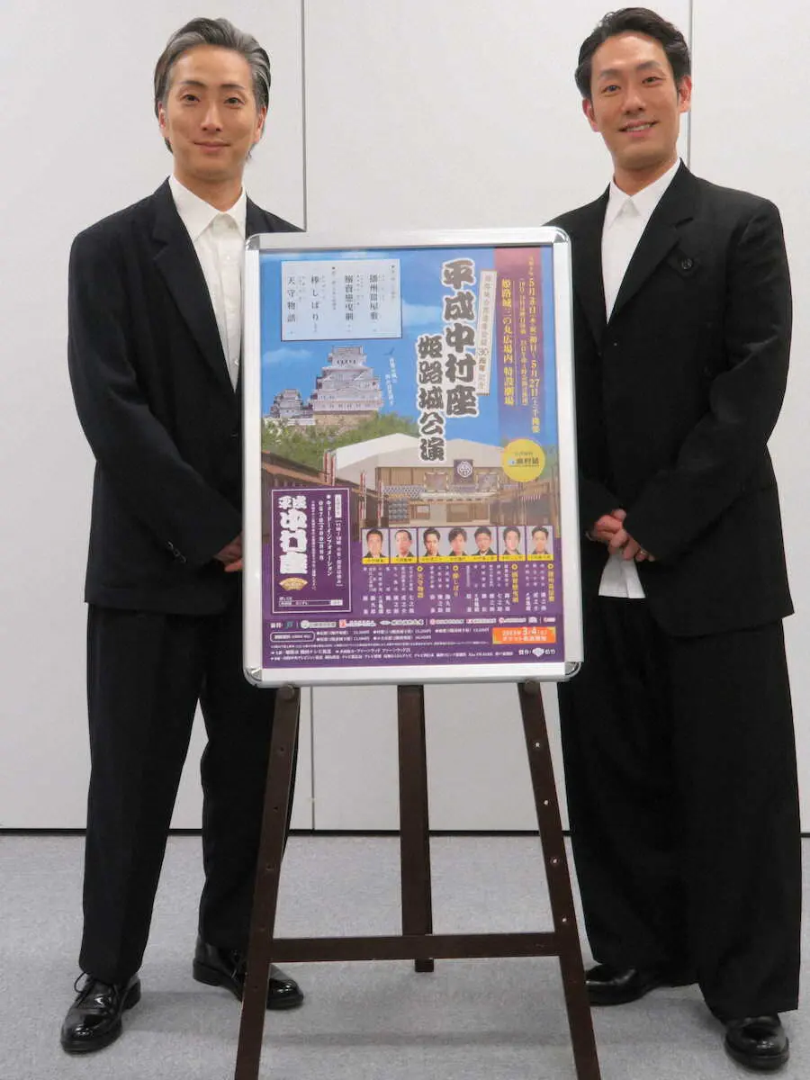 歌舞伎俳優の中村勘九郎(41)、中村七之助(39)兄弟が16日、大阪市内で「平成中村座 姫路城公演」(5月3~27日)の取材会を行った。