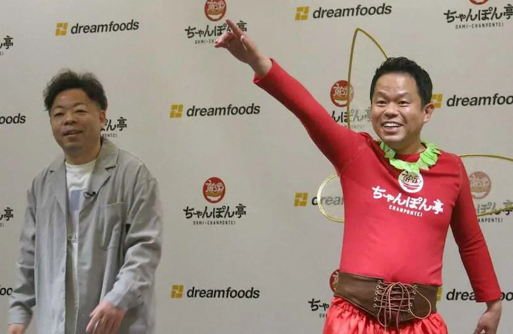 「近江ちゃんぽんをニッポンのちゃんぽんに!」と60周年を迎えた同社のCMが4月1日から関西の放送局などで流される。CMにはダイアンの2人が登場。津田は真っ赤な衣装で「ちゃんぽんの妖精」に扮し、持ちギャグの「ゴイ、ゴイ、スー」を、ちゃんぽんの味変で親しまれているお酢と引っかけ「ゴイ、ゴイ、酢~」と麺にお酢をかけながら絶叫する。撮影の際にはユースケも「CMを忘れて本気で食べた」。CMソングも60秒フルバージョンを制作して披露。「長渕(剛)さんとかミスチルさんにカバーしてもらえたら。紅白を狙いたい」とユースケが夢を語った。