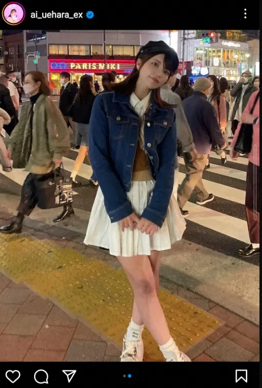 上原亜衣 ジージャン&ミニスカ姿披露に「衝撃的可愛いさ」「高校生って言っても全然いけます」「女神」