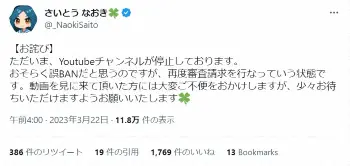 チャンネル登録者数130万人、「ウマ娘」など手掛ける人気イラストレーターがBAN「おそらく誤BAN」