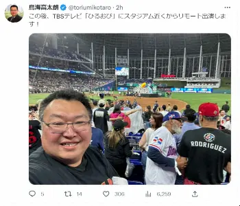 旅行アナリスト・鳥海高太朗氏 侍ジャパン決勝を生観戦「涙しました…今まで感じたことのない感動」