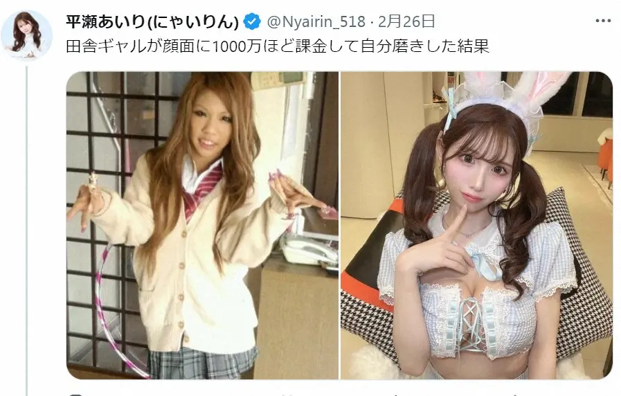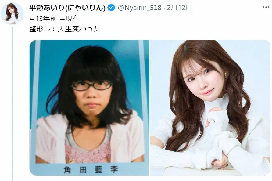 平瀬あいり公式ツイッター(@Nyairin_518)から 25歳人気グラドル、7年前の免許証公開 衝撃ビフォーアフター 親に「産ま… ギャラリーで見る この記事のフォト 2023年03月22日の画像一覧 もっと見る 2023年03月22日の画像をもっと見る