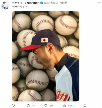 ニッチローは「世界一へ 頑張れ侍ジャパン」とつづり、イチロー氏のものまねを披露。ツイッターでは「世界一行くぞ」と投稿し、雄叫びをあげるイチロー氏の横顔をマネた。