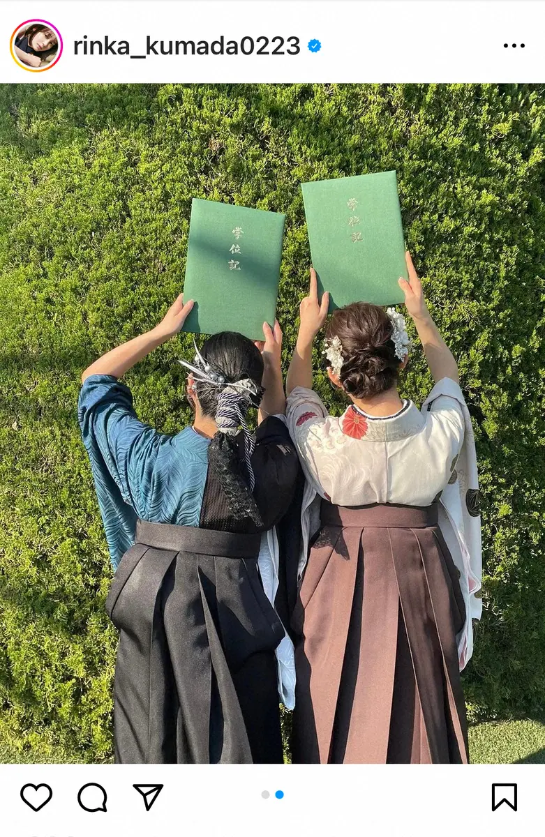 モデルで女優の久間田琳加(22)が22日、自身のインスタグラムを更新。大学を卒業したことを報告した。