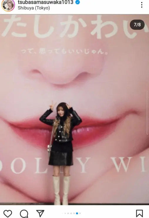 「渋谷の街に巨大益若つばさが出現!!おっきすぎて通り過ぎて気づかないというハプニング発生 笑!!」と東京・渋谷のスクランブル交差点近くにお目見えした“巨大益若つばさ”と自身を撮った写真などをアップ。「感想としては、デッカーーー!!皮膚ー!鼻ー!口ー!まつげー!って感じ!笑」などとつづった。