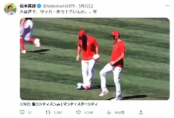 橋本氏は「大谷選手、サッカーまで上手いんか。。笑」とツイートし、1本の動画を投稿。そこには小さめのサッカーボールリフティングする大谷の姿があり、見事なボールコントロールをみせていた。