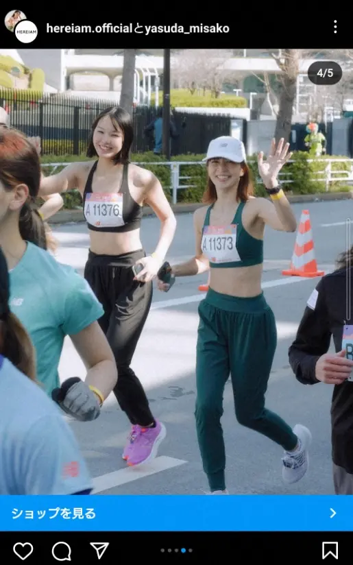 「第13回渋谷・表参道Women's Run 春の風を感じながら渋谷→表参道→明治神宮をランニング!暖かな陽気に包まれて、みんな自然と笑顔が溢れてリフレッシュ」とつづり、ブラトップ&ランパン姿で参加した渋谷・表参道を駆け抜ける女性限定の10キロレースの写真をアップした。
