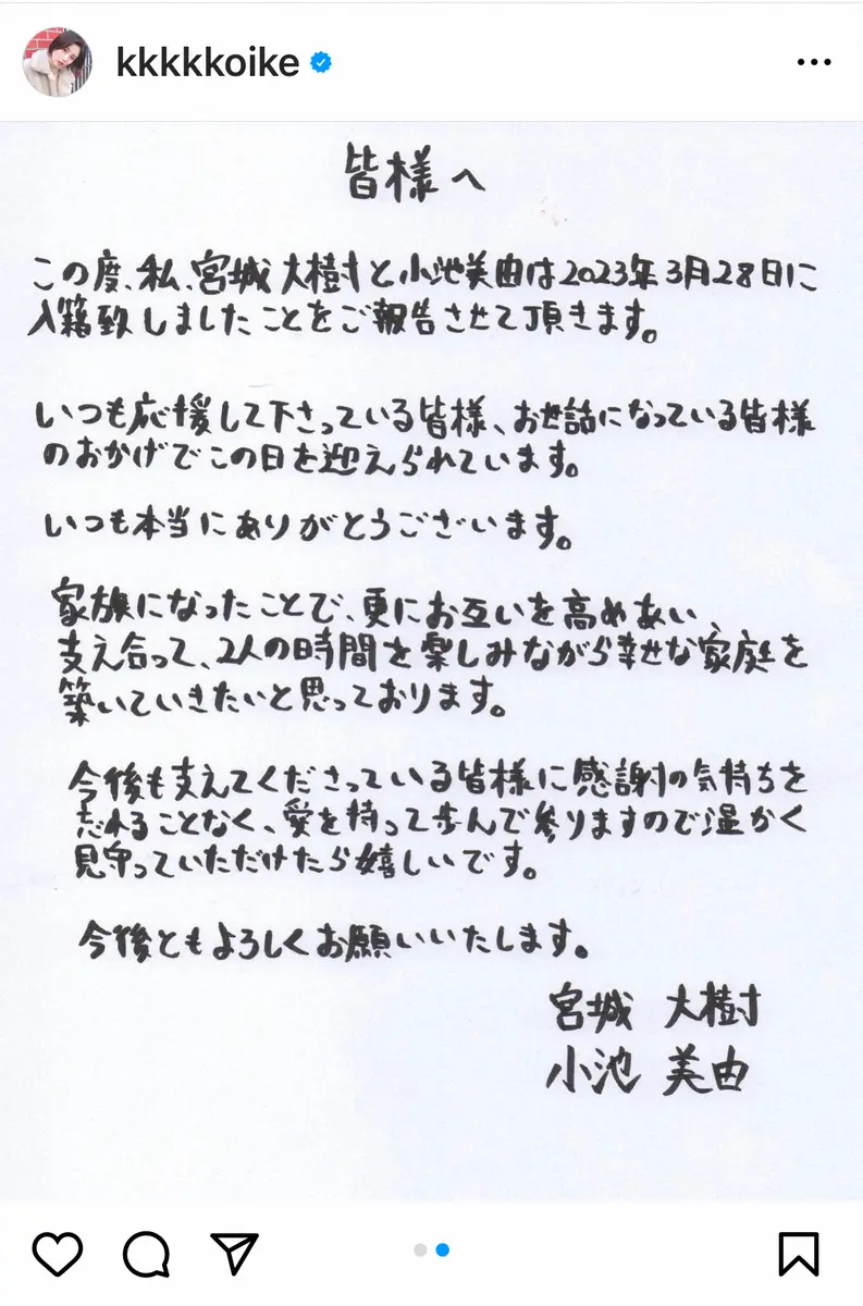小池美由インスタグラム(@kkkkkoike)から 小池美由 元テラハ・宮城大樹と結婚「2人の時間を楽しみながら幸せな家庭… ギャラリーで見る この記事のフォト 2023年03月29日の画像一覧 もっと見る 2023年03月29日の画像をもっと見る