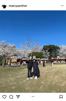 マークは「KCOと花見」と満開の桜をバックに花見を満喫する2ショットを投稿。「#臼杵城址桜まつり」と添えており、場所は滞在先の大分であることが分かる。KEIKOはマスク姿にキャップ、黒のロングスカートという全身黒のいでたちで、花見を楽しんでいることがわかる写真となっている。