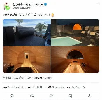 はじめしゃちょー“3億豪邸”にサウナを導入 迷惑客のストレスから解放も…総費用に「たっかぁ!!」