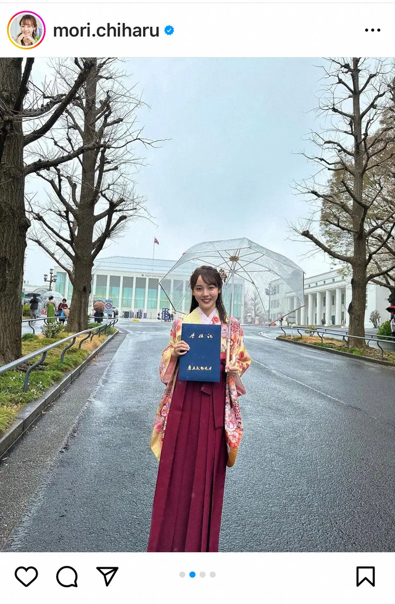 森千晴アナウンサーインスタグラム(@mori.chiharu)から テレ朝「グッド!モーニング」森千晴アナ 慶大卒業を報告 艶やか袴姿で「… ギャラリーで見る この記事のフォト 2023年03月31日の画像一覧 もっと見る 2023年03月31日の画像をもっと見る
