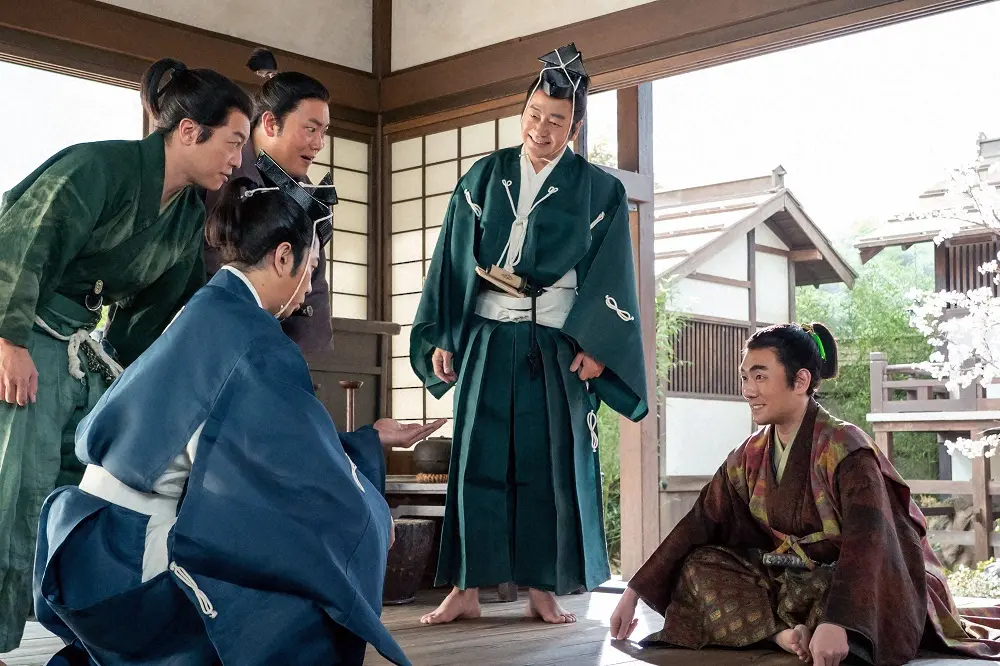 大河ドラマ「どうする家康」第13話。南蛮菓子「コンフェイト」を調達してきた茶屋四郎次郎(中村勘九郎・右端)(C)NHK