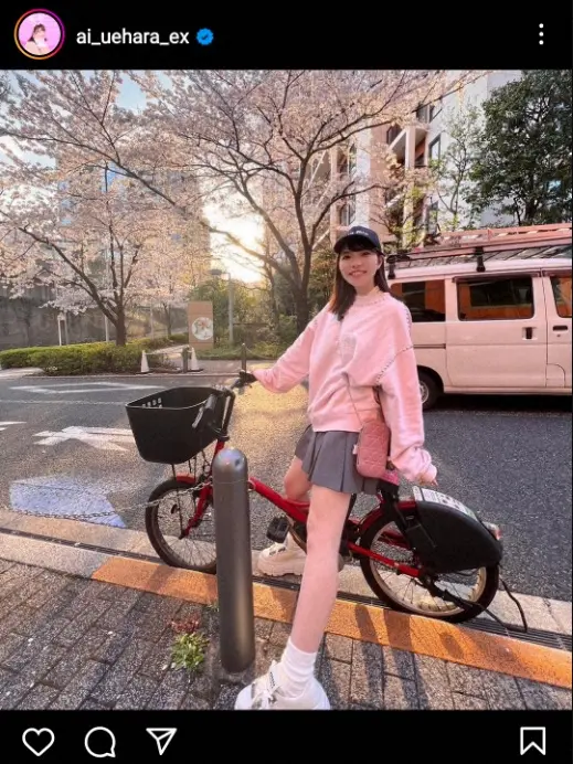 上原亜衣 ミニスカ・サイクリング姿披露に「神かよ~」「姫さま わぉ~~最高!」「たのしそー」