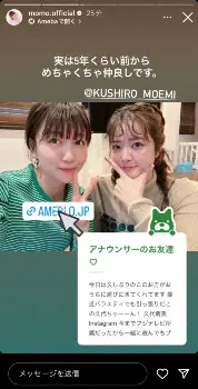 桃は、インスタグラムでもブログを引用し「実は5年くらい前からめちゃくちゃ仲良しです」と明かした。