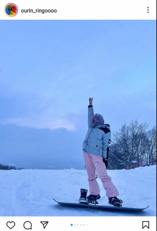 タレントの王林(24)が2日までに自身のインスタグラムを更新。青森でのスノーボードの華麗な滑りを披露した。