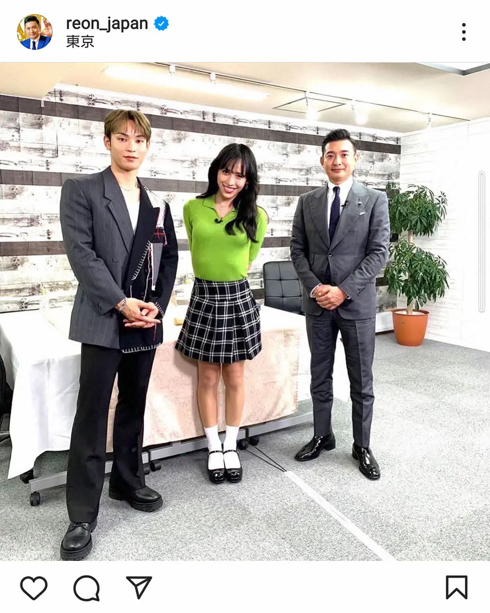 占い師・木下レオン(47)が2日、自身のインスタグラムを更新しタレントのryuchell(りゅうちぇる=27)、人気ボーイズグループ「JO1」の與那城奨(27)との3ショットを披露した。