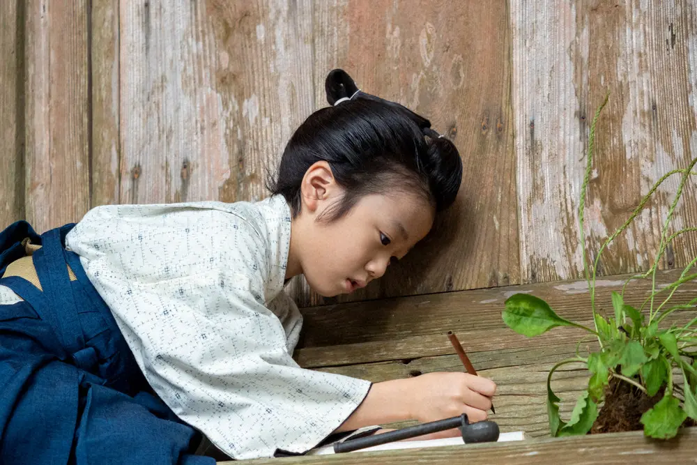 連続テレビ小説「らんまん」第4話。あるものを書く万太郎(森優理斗)(C)NHK