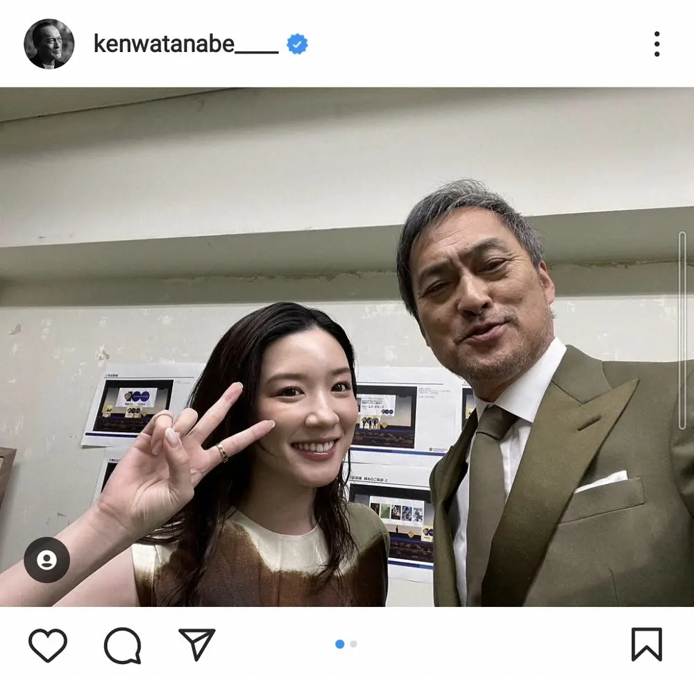 俳優の渡辺謙(63)が5日、自身のインスタグラムを更新。女優の永野芽郁(23)との2ショットを披露した。