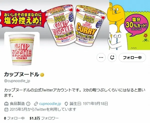 カップヌードルの公式ツイッターから(@cupnoodle_jp)