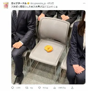 カップヌードル公式「入社式で居眠りした新入社員が…」まさかの姿に変身 約2000万表示の超バズリ!