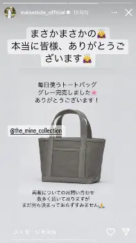 里田は「まさかまさかの 本当に皆様、ありがとうございます毎日使うトートバッググレー完売しました。ありがとうございます!」と喜びの報告。「再販についてのお問い合わせ 数多く頂いておりますが まだ何も決まっておらずすみません」と嬉しい悲鳴をあげていた。
