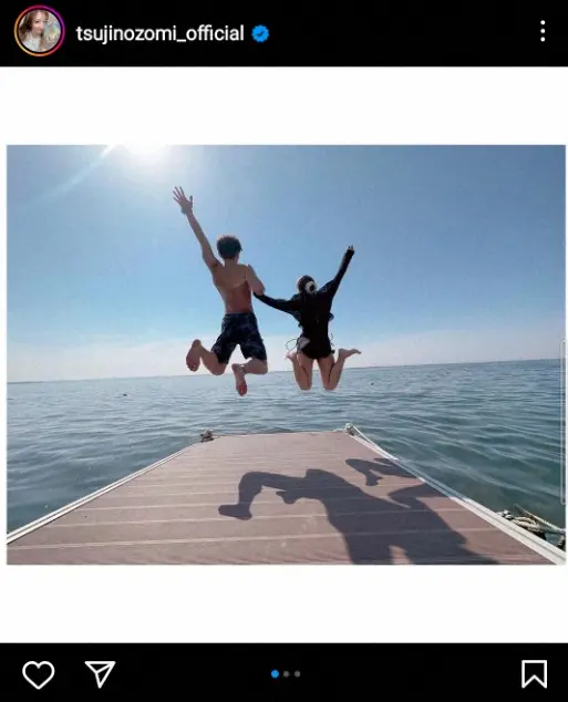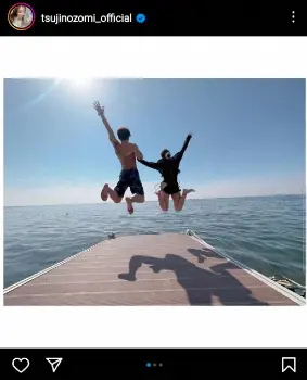 「映え」とつづり、2人で海に向かってジャンプする写真や両手を広げるポーズを取っている写真をなどをアップした。4日には、家族旅行でプール遊びを楽しむ様子を投稿していた。