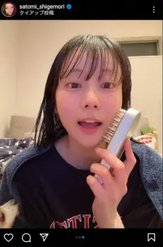 重盛さと美 湯上りショット公開に「すっぴん??めっちゃ綺麗だし可愛いです!」「水も滴るいい女」