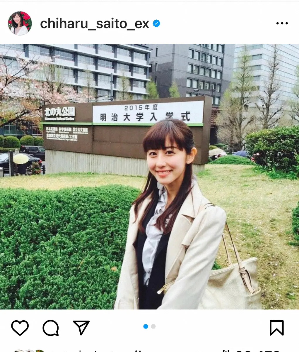 テレビ朝日・斎藤ちはるアナウンサー公式インスタグラム(@chiharu_saito_ex)から テレ朝・斎藤ちはるアナ 母校への恩返し報告 8年前の大学入学式ショット… ギャラリーで見る この記事のフォト 2023年04月09日の画像一覧 もっと見る 2023年04月09日の画像をもっと見る