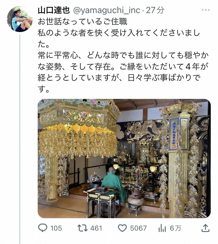 山口達也さんツイッター(@yamaguchi_inc)から 山口達也さん、手を差し伸べてくれた“恩人”に感謝「私のような者を快く受… ギャラリーで見る この記事のフォト 2023年04月09日の画像一覧 もっと見る 2023年04月09日の画像をもっと見る