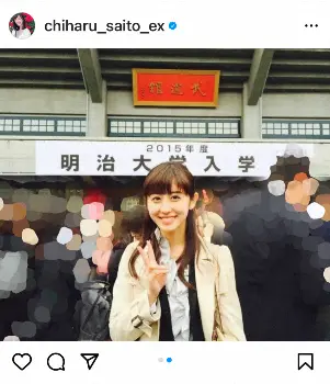 テレビ朝日の斎藤ちはるアナウンサー(26)が8日、自身のインスタグラムを更新。大学入学式での初々しい姿を公開した。