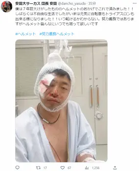 団長安田 7年前の事故の凄惨な大ケガ公開 血だらけの顔に目は変色…「ヘルメット被って欲しい」