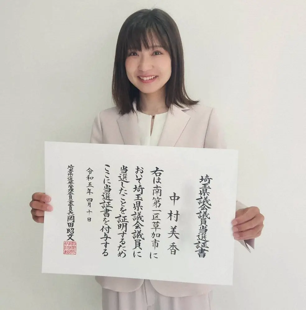 双子の元「フリー素材アイドル」の姉・中村美香氏 埼玉県議当選証書手に決意「身近な存在の議員に」