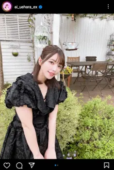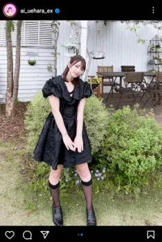 上原亜衣 黒のミニワンピ姿公開に「足綺麗」「可愛すぎい!」「黒も似合う」「やべー これ好きだ」
