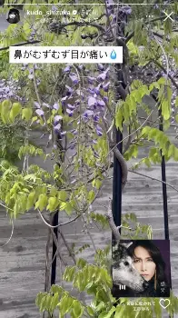 また、工藤本人もインスタグラムのストーリーズを更新。「鼻がむずむず目が痛い」というメッセージとともに、BGMに「黄砂に吹かれて」を設定し、ファンをわかせた。