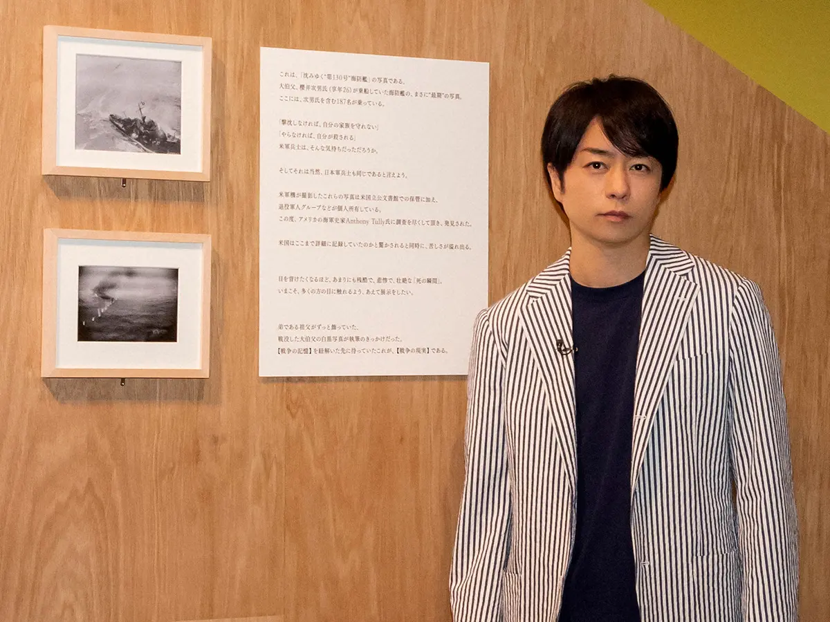 展覧会を構成する7つのパートのうちの1つが「NO MORE WAR」。2021年に真珠湾攻撃・日米開戦80年にあたり、2万5000字にわたる「櫻井翔と戦争の記憶」を雑誌「ニューズウィーク 日本版」に寄稿。会場には記事でテーマにした、海軍士官として戦死した大伯父の資料や写真が展示されている。