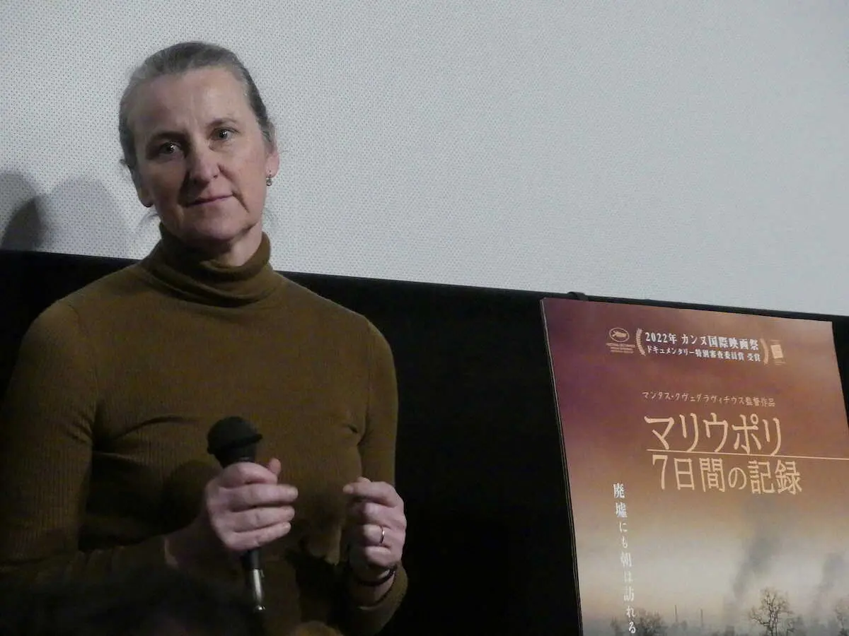 ロシア軍がウクライナに侵攻して間もない2022年3月のウクライナ東部ドンバス地方の都市を記録した映画「マリウポリ 7日間の記録」が15日に初日を迎え、東京・渋谷のシアターイメージフォーラムでプロデューサーのナディア・トリンチェフさんが舞台あいさつを行った。