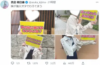 これに、グラビアアイドルの倉持由香は「すてきな妹さん…w」とコメント。その他「これは最強!誰もかないません」「妹さん、やることが可愛いw」「ガチ勢すぎっ」「素敵家族ですね」「明日香さんを姉に持てたことを心の底から誇りに思っているのでしょうね」「見たことないけど絶対かわいいやん」との声が寄せられ、約2000件リツイートされるなど反響を呼んでいる。