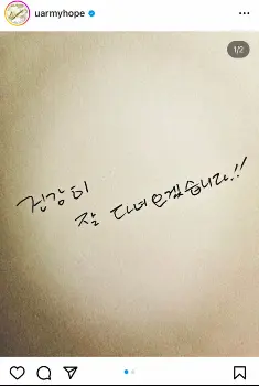 韓国の人気音楽グループ「BTS」のJ-HOPE(29)が、17日までに自身のインスタグラムを更新。入隊を報告した。