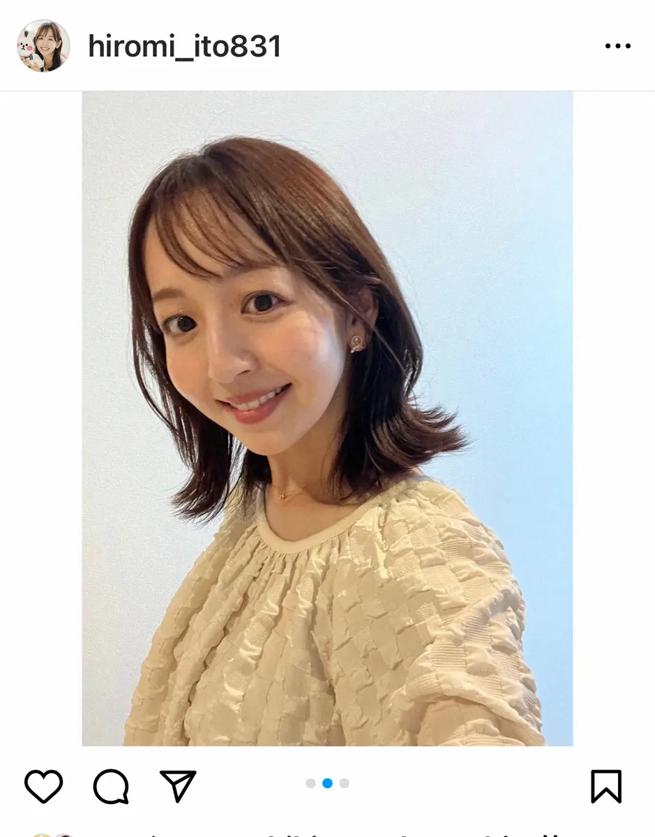昨年11月に第2子となる長女を出産したことを報告した伊藤アナ。「10cmくらい?!髪を切りました!とヘアカットした最新ショットを披露した。