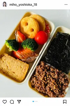 高校生と中学生の子どもを持つママである吉岡は「歪(いびつ)なたまご焼き弁当 子供達が幼稚園のころに良く買っていたポテトを久しぶりに、、、懐かしい」とおいしそうなお弁当を写真を投稿した。