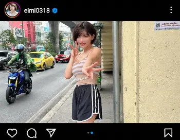 「タイ大好き 次は1週間後にお仕事でタイの皆んなに会いに行くね!」とつづり、タイの街中でのタイトなタンクトップ、ショートパンツ姿の写真をアップした。