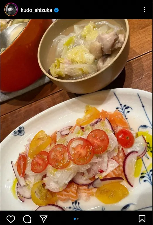 工藤静香 おススメ!サーモン&トマトのマリネ、レシピ公開に「血液サラサラに」「ヘルシーで美味しそう」