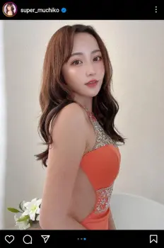 「今日は久々に大きめのカラコンつけた 加工アプリもあってか人形感ある」とつづり、胸元とサイドが開いたオレンジ色のドレス姿の写真をアップした。