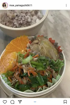 山口は連日、高1長女と中1長男のために弁当を作っていると明かしているが、この日は「簡単キットで作るビビンバと長女が昨夜作ってくれた豚肉の白菜煮を詰めてできあがり」と書き出すと、ビビンバ、オレンジ、豚肉の白菜煮、ご飯が入った弁当をアップ。「あれ?これって・・・長女とのコラボ弁当じゃん!!って朝1人でにやけたよ。笑」と記した。