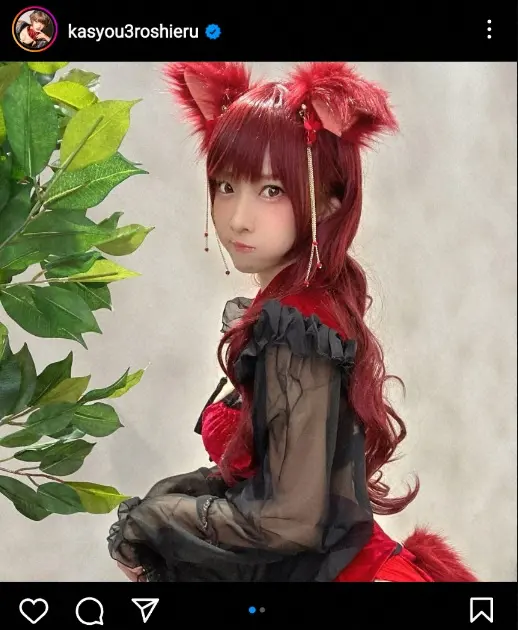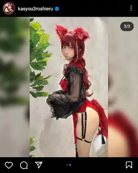 人気コスプレーヤーの火将(かしょう)ロシエル(年齢非公表)が21日までに自身のインスタグラムを更新。“隠しきれてない照れ顔”を公開した。