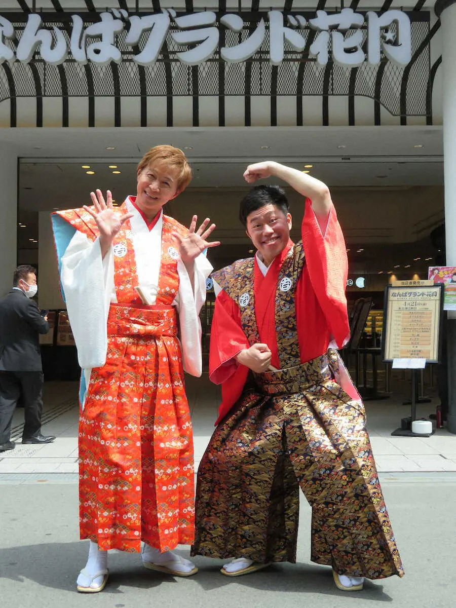 5月2~8日に同劇場で新座長2人のお披露目公演を控えており、この日は座員らの応援団「ホンワカパッパ~隊」を引き連れ、商店街の代表者らにあいさつ。期待を改めて強く感じたようで「今も緊張や不安はあるが、プレッシャーに負けないよう頑張りたい」と殊勝に語った。